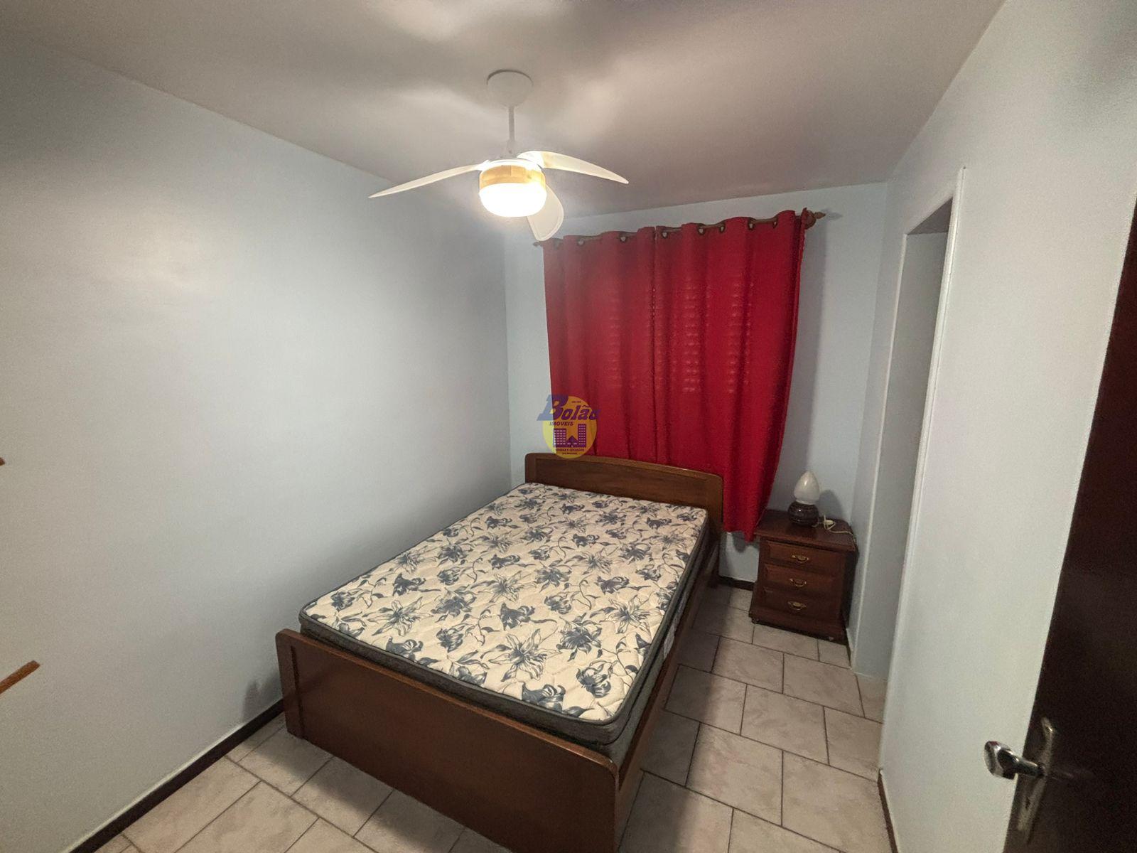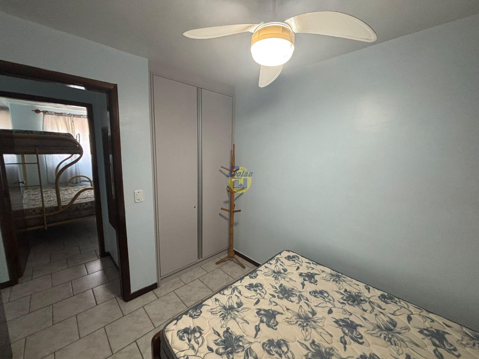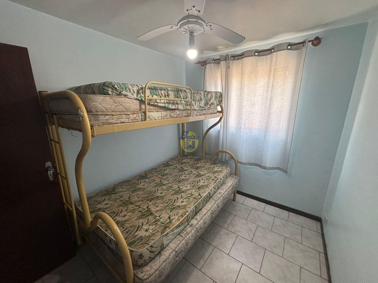 Apartamento contendo 02 quartos sendo 01 suíte, sala, cozinha, banheiro social, ventiladores de teto nos dois quartos, e não possuí churrasqueira e não possuí elevador. vaga de garagem descoberta para 01 carro. Acomodações para 05 pessoas: 01 cama de casal, 01 beliche, 02 couclhao avulso.