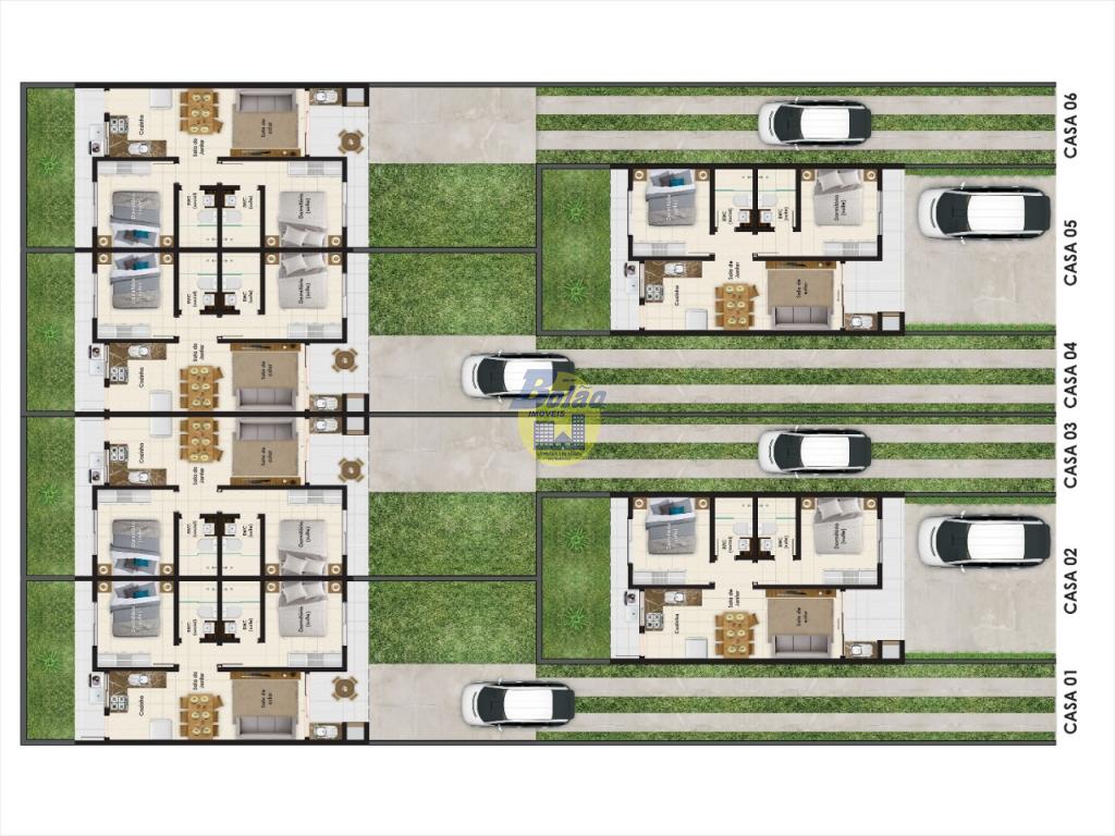 Casa contendo 02 quartos, sendo 01 suíte, 01 banheiro social, sala, cozinha, churrasqueira, vaga de garagem descoberta para 04 carros.
