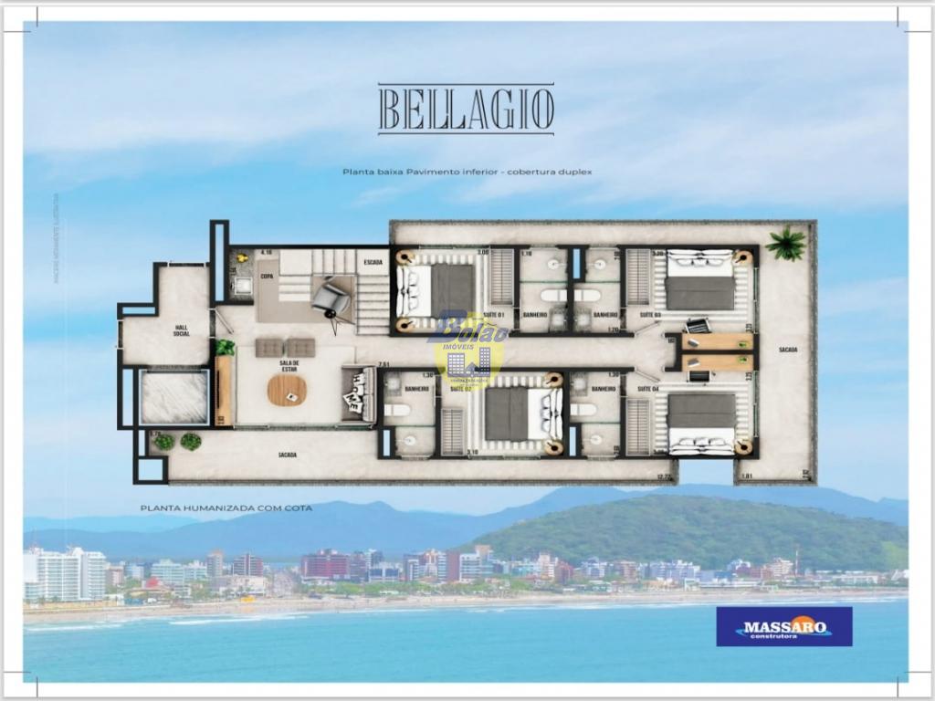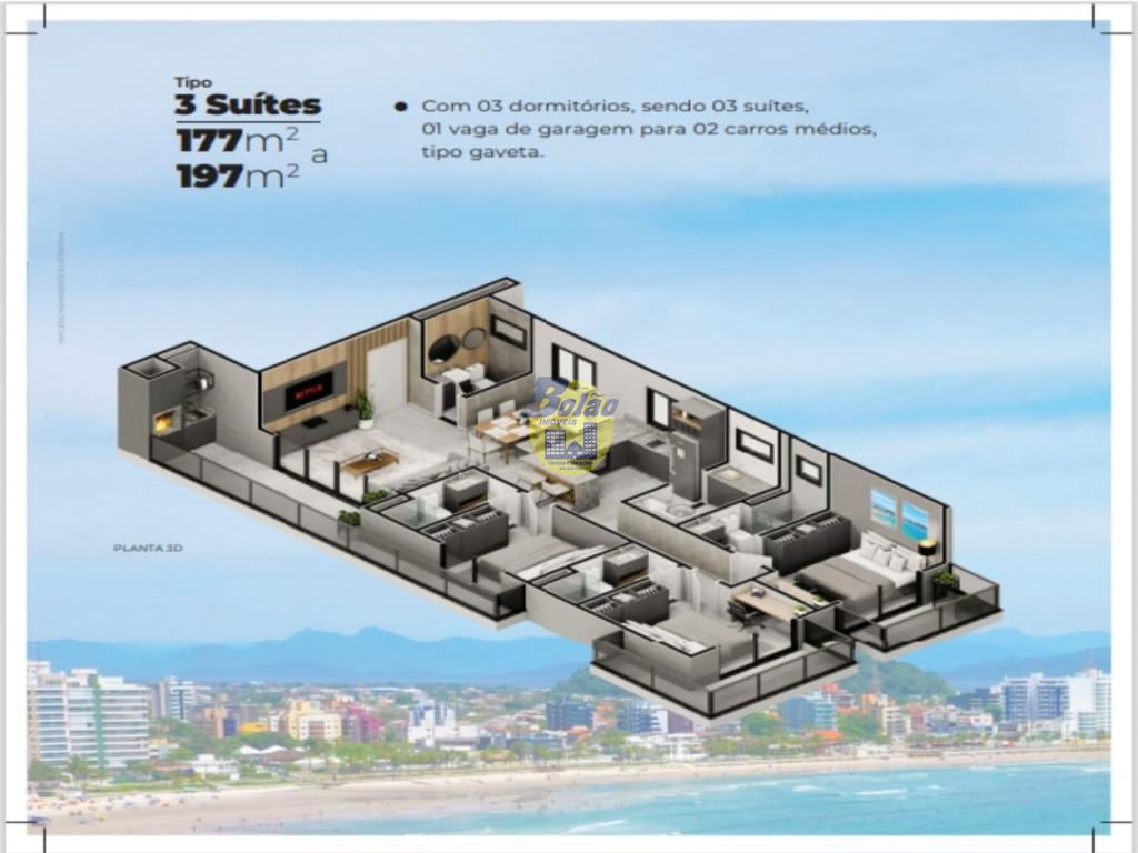 Lindo apartamento, a 100 metros da praia do hotel vila real, com vista para o mar. Contendo 03 suítes, 01 vaga de garagem para 02 carros médios, tipo gaveta, . Central de gás com medição individual, antena coletiva para canais abertos, água quente e fria com medição individual, elevador de última geração, interfone com acionamento automático do portão, detalhes em granito, detalhes em gesso, entrega no 1º semestre de 2027.