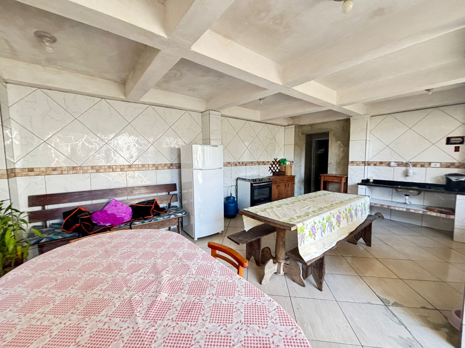 Sobrado contendo 08 quartos, sendo 03 suítes, banheiro social, cozinha, sala de tv, sala de jantar, churrasqueira e vaga de garagem para 04 carros.