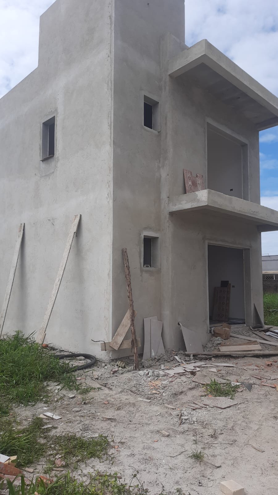 Sobrado novo, em fase de acabamento e pintira, medindo 66m², contendo 02 quartos, banheiro social, sala e cozinha conjugada, lavabo, e garagem para 02 carros.