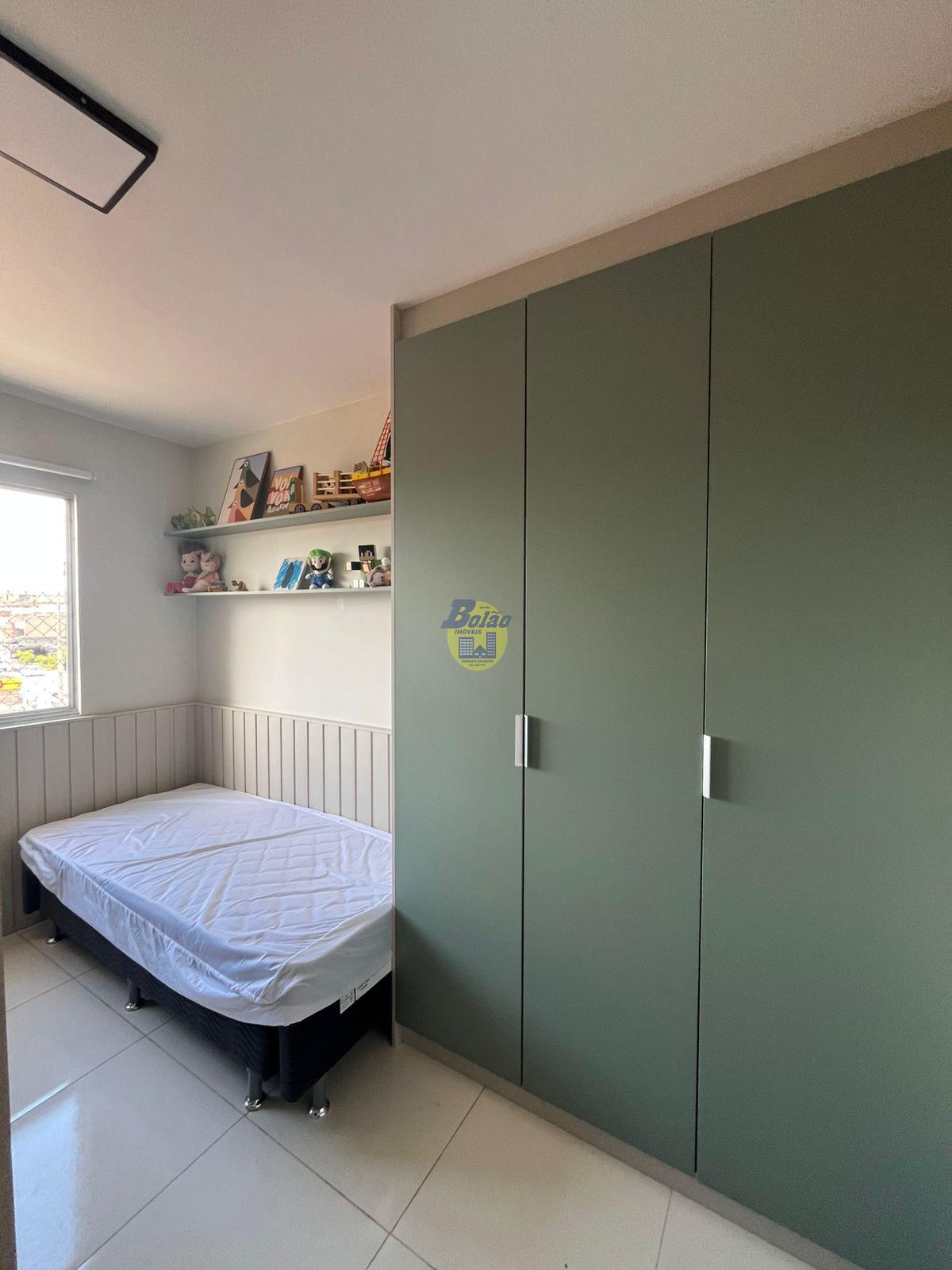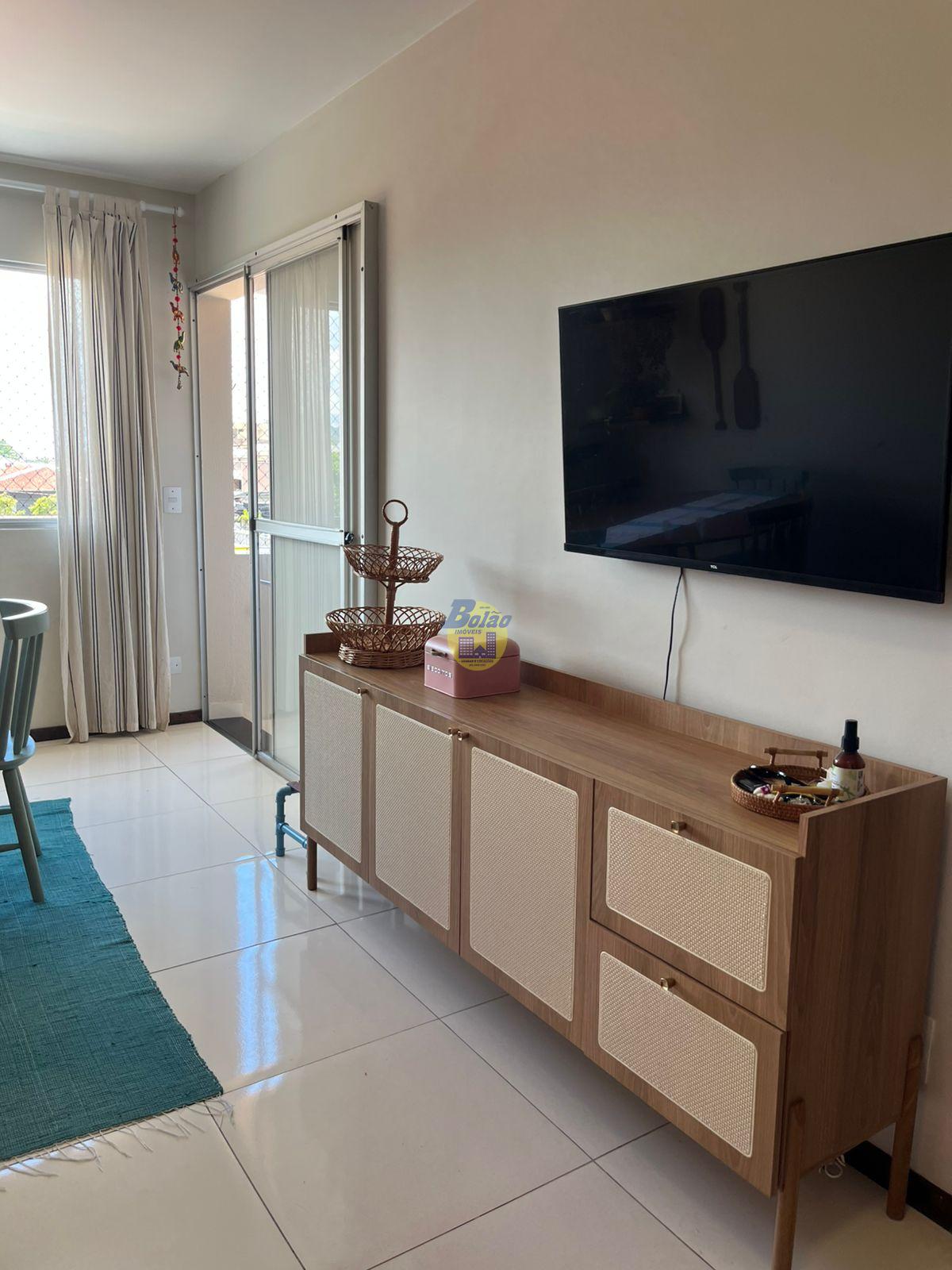 Apartamento semi mobiliado, contendo 02 quartos, 01 banheiro social, sala, cozinha, área de serviço, garagem coberta para 01 carro, salão de festas, piscina coletiva e salão de festas.