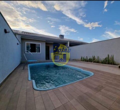 Casa com edícula contendo 03 quartos, sendo 02 suítes, banheiro social, sala, cozinha, área de serviço, piscina, churrasqueira e vaga de garagem para 02 carros. Área construida total medindo85,35m², sendo 64m²a área construída relativa a casa e 21,35m² a área construída a edicula.