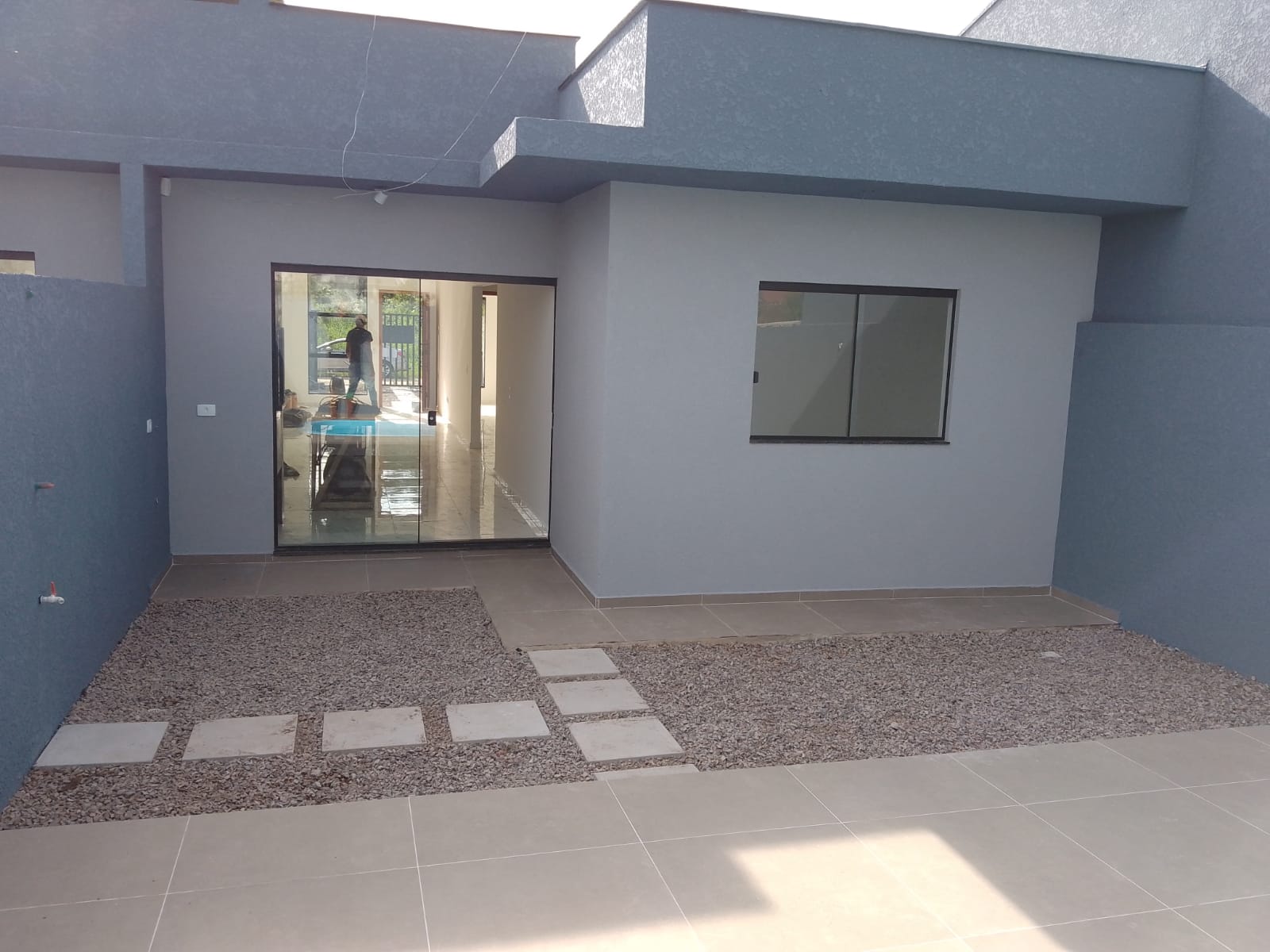 -- Garagem e Jardim na frente.