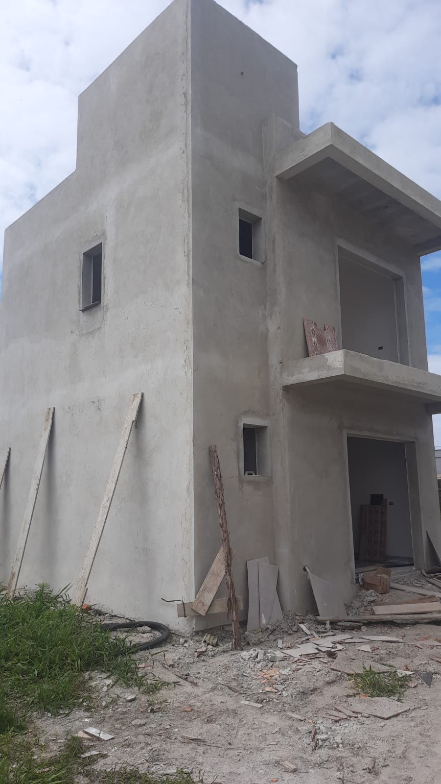 Sobrado novo, em fase de acabamento e pintira, medindo 66m², contendo 02 quartos, banheiro social, sala e cozinha conjugada, lavabo, e garagem para 02 carros.